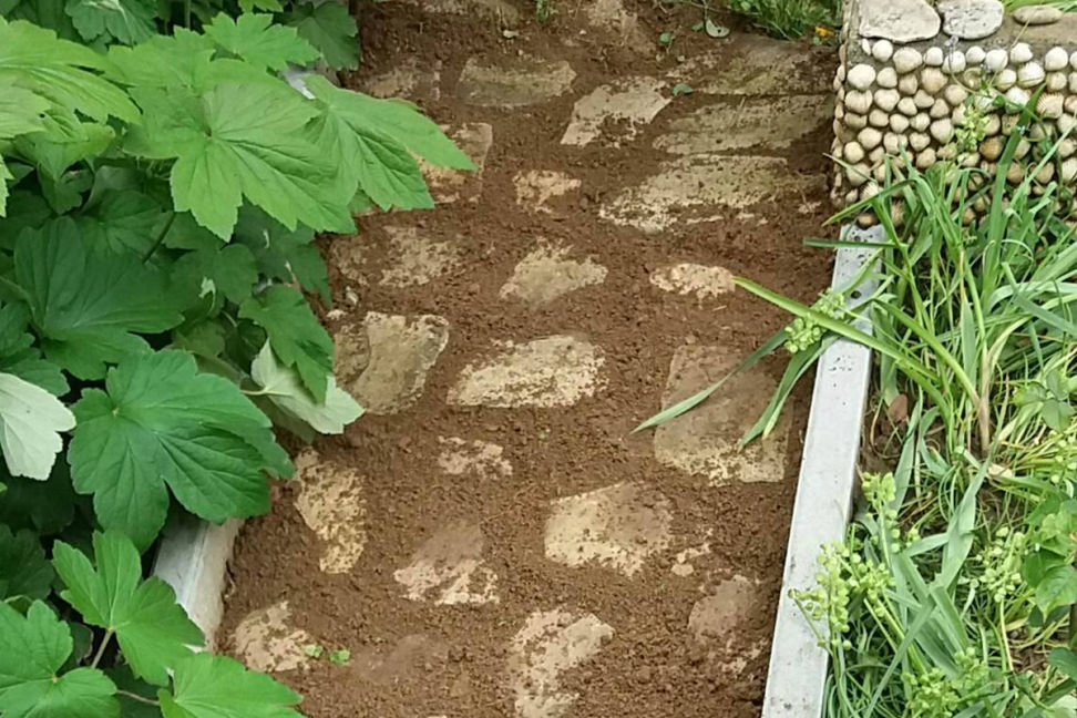 - Az esztétikus fa, műanyag vagy beton szegélyek földbe helyezése.